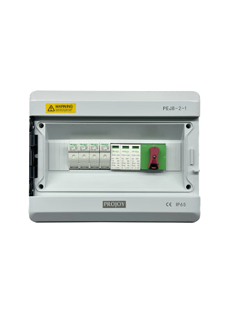 Projoy PEJB series DC Junction Box is a wiring device to ensure the orderly connection and junction of photovoltaic modules in the photovoltaic power generation system.The device can ensure that the photovoltaic system is easy to cut off the circuit during maintenance and inspection, and reduce the scope of power outage when the photovoltaic system fails. A